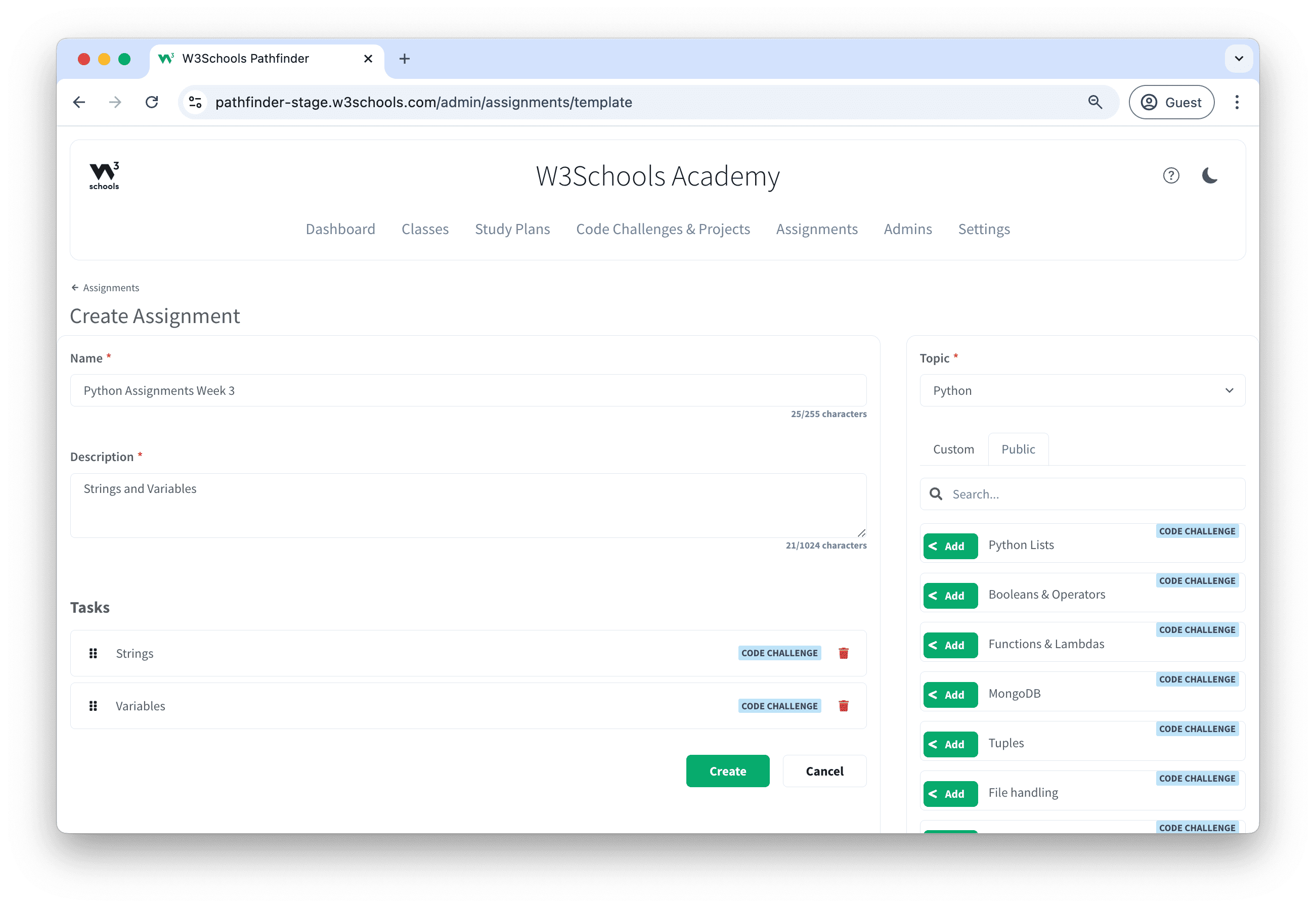Spaces is a part of W3Schools Academy and can be used by teachers and students.