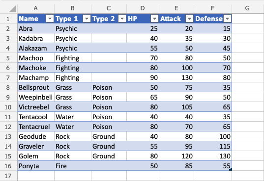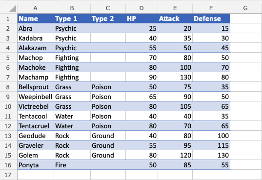 Example: Blue, Table Style Medium 2, which is how the default looks like.