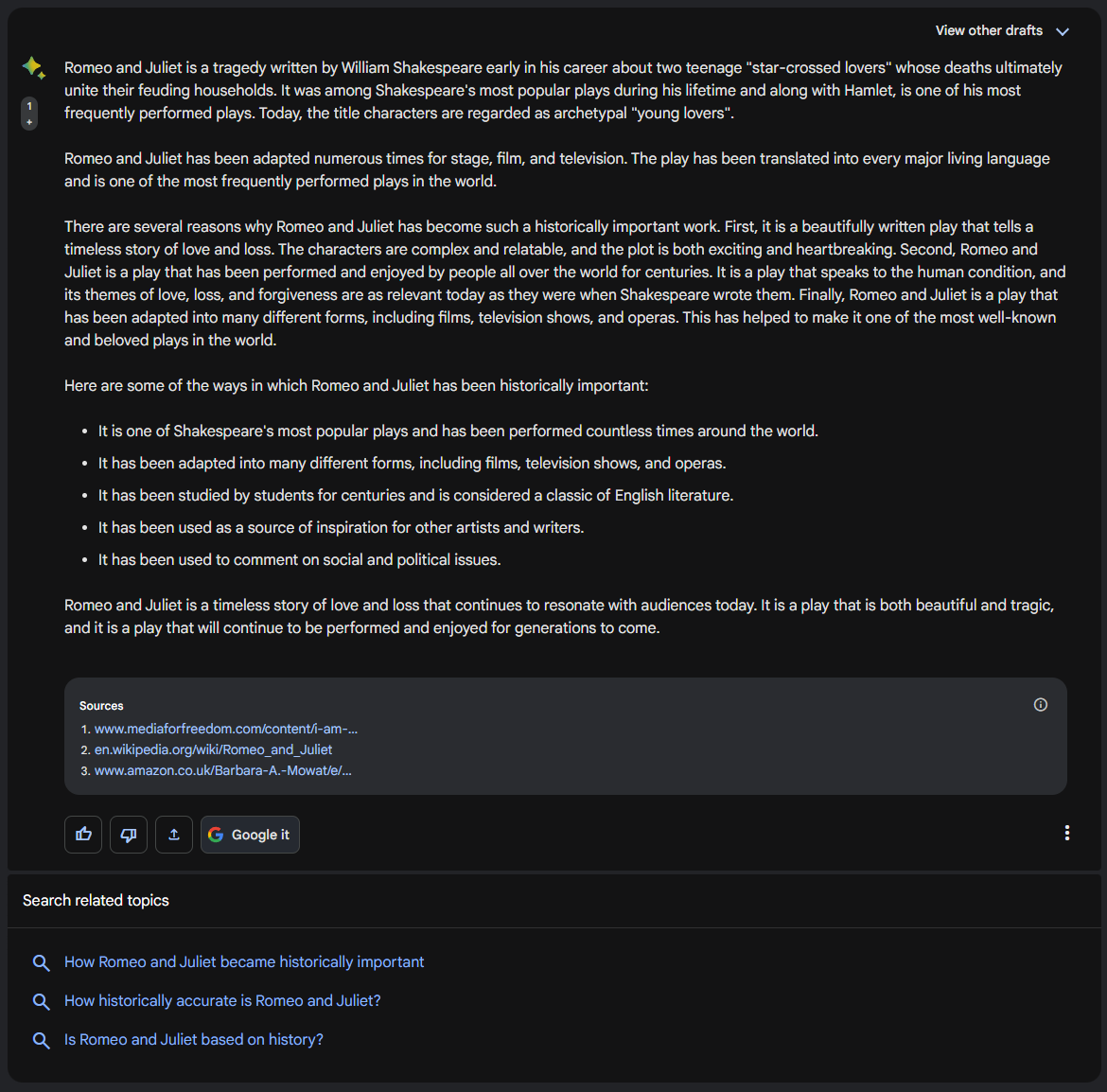 Explain how "Romeo and Juliet" written by "William Shakespeare" became such a historically important work.