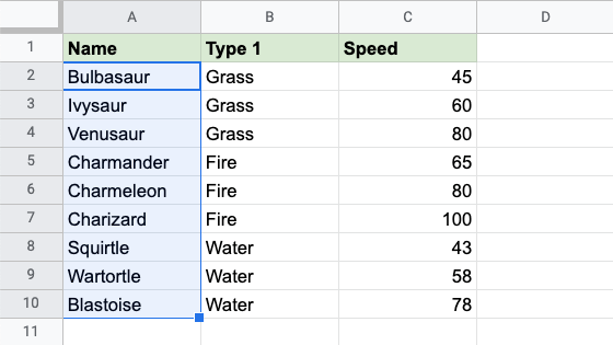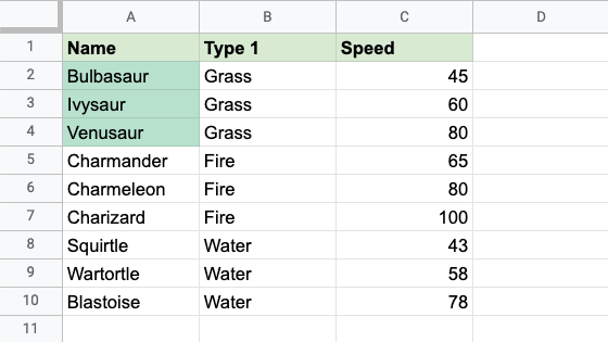 Highlight the Pokemon name values ending with saur with Single Color conditional formatting.