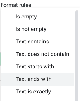 1. Select the Text ends with option from the Format rules drop-down menu:
