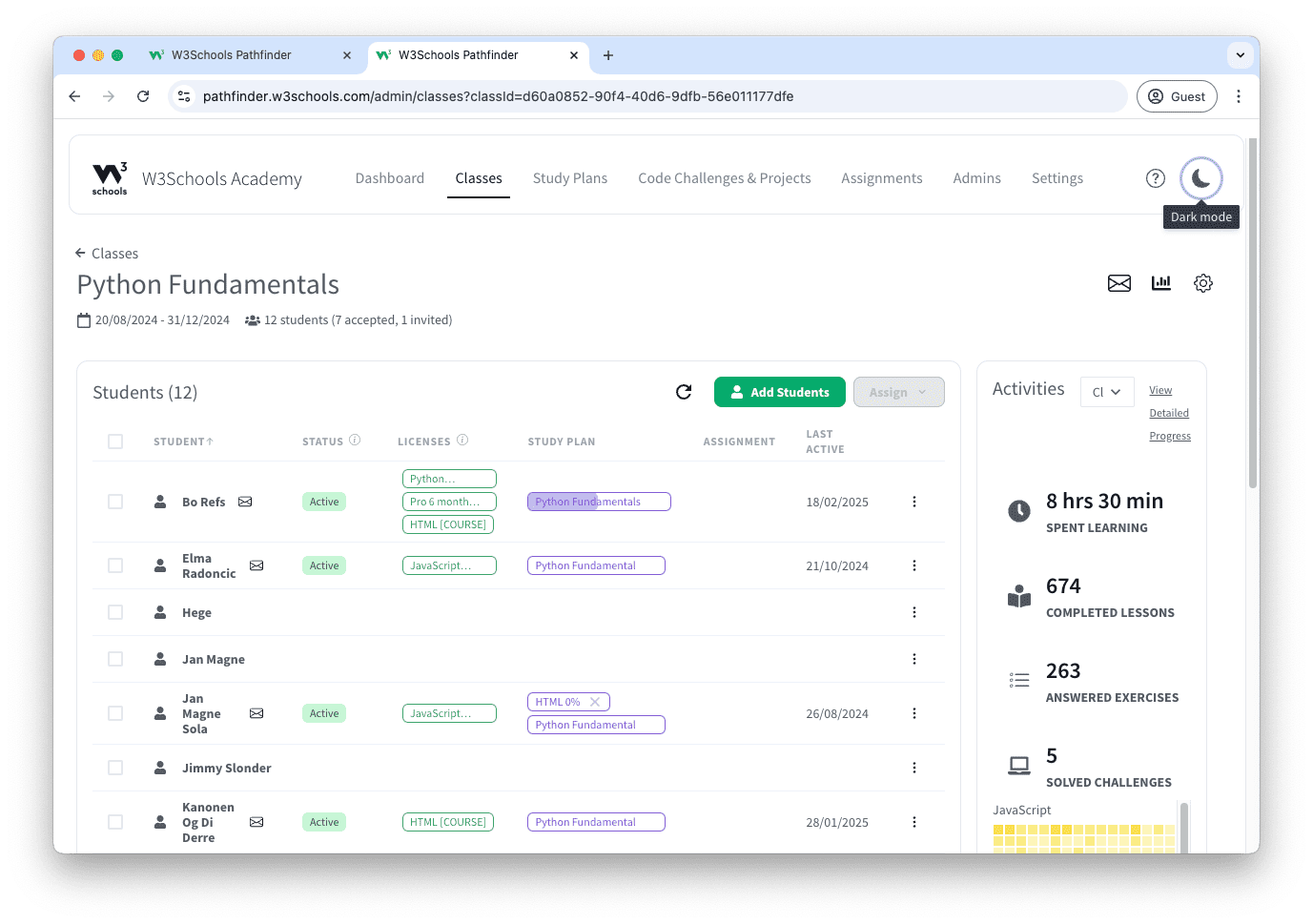 With W3Schools Academy you can manage everything from licenses to certificates.