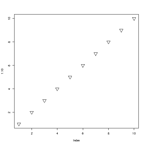 The values of the pch parameter ranges from 0 to 25, which means that we can choose up to 26 different types of point shapes: