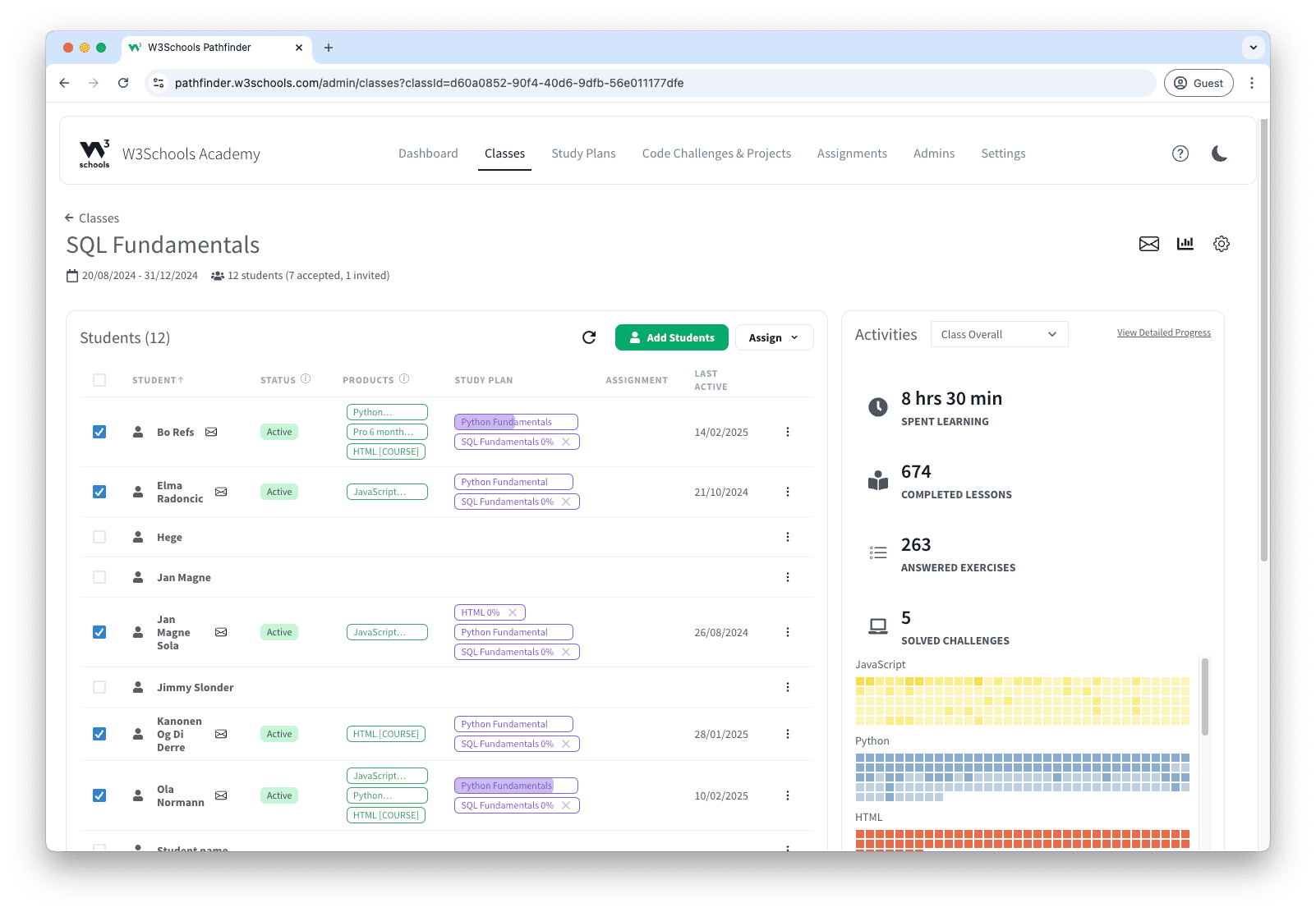 With W3Schools Academy you can manage everything from licenses to certificates.
